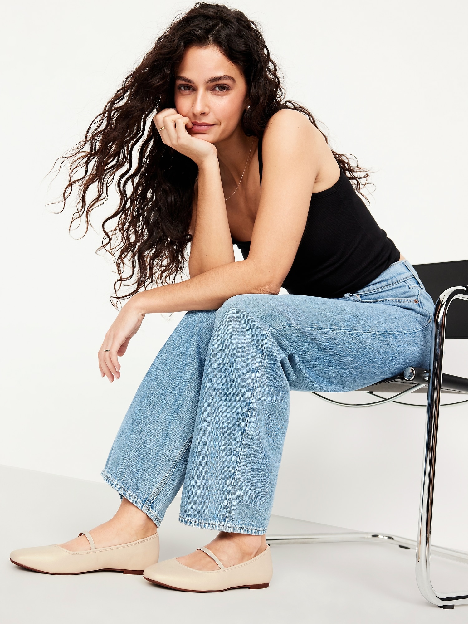 Mary Jane Square-Toe Ballet Flats: square toe, soft upper, elastic at top, #745324
