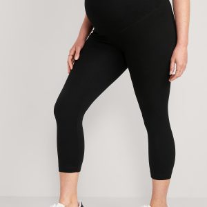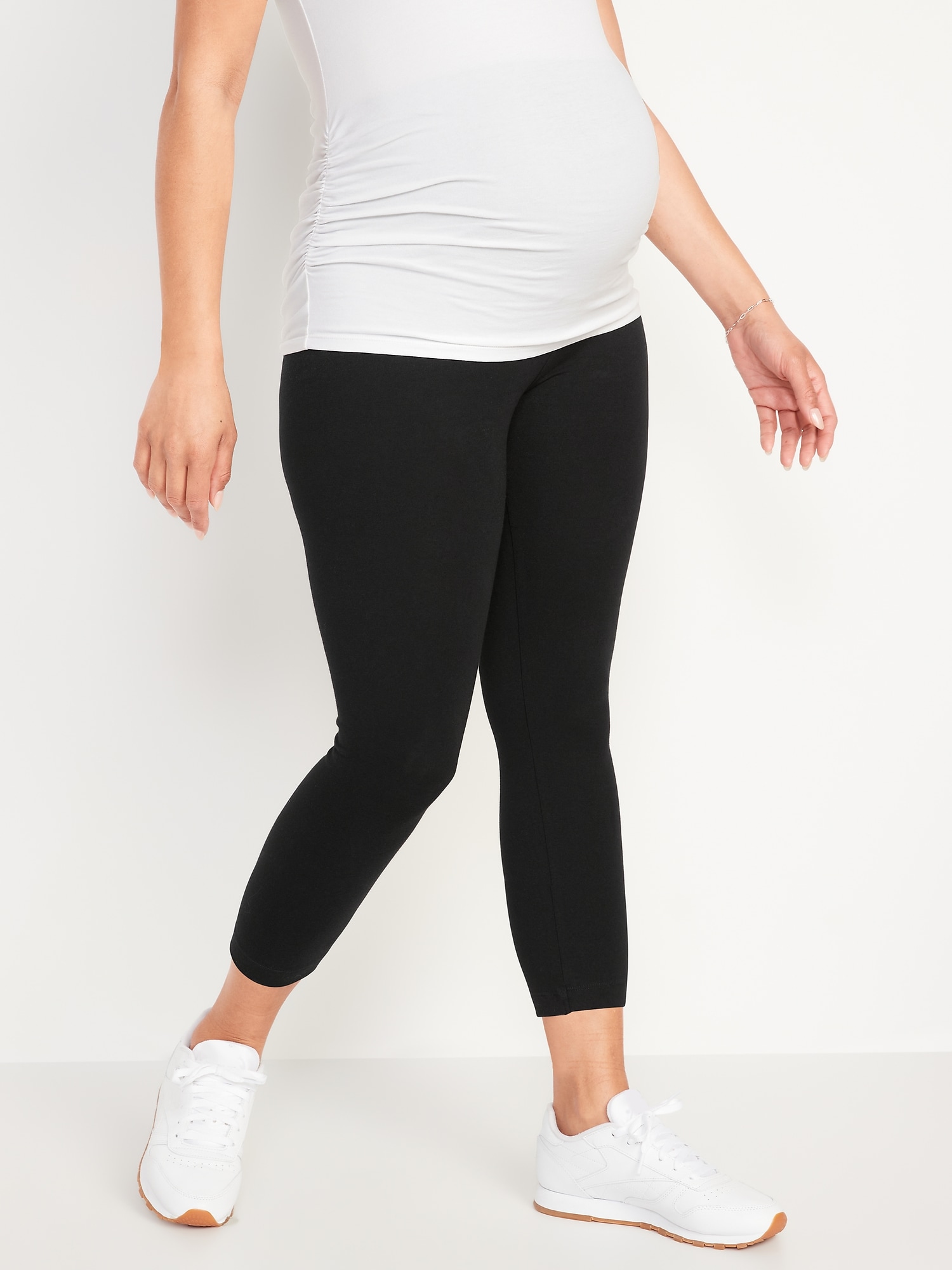 Maternity 2-Pack Full-Panel Cropped Jersey Leggings: Pack includes 2 pairs of cropped leggings, each in a different color., Elasticized full panel waistband., Soft cotton jersey, with comfortable stretch., Easy pull-on style., Tag-free label inside back waist for added comfort., #784570
