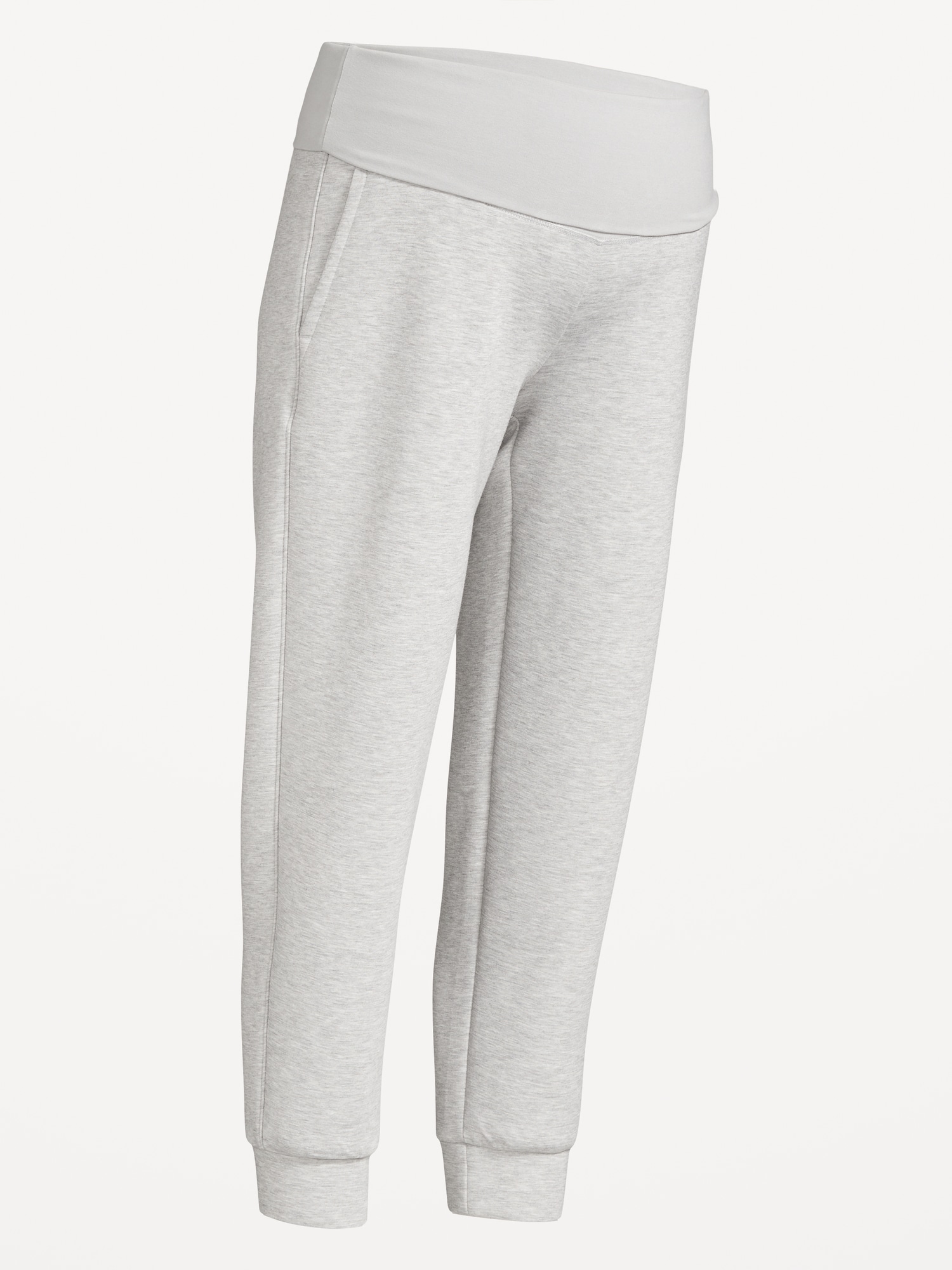 Maternity Bounce Fleece Rollover-Waist Jogger Sweatpants: Featuring Bounce Fleece. A smooth, cooling finish that feels good and looks chic everywhere you go.rollover waistband, diagonal hip pockets, breathable, pull-on style, #826399