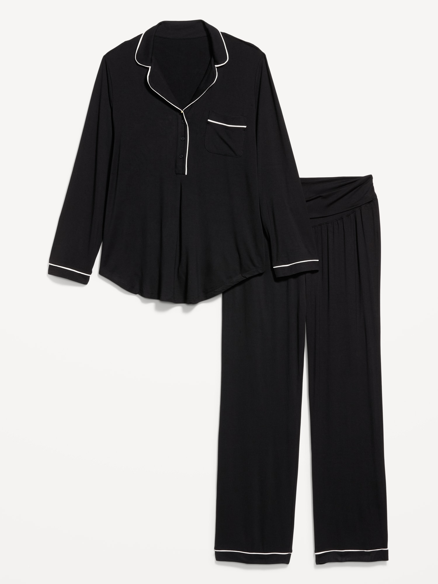 Maternity Classic Pajama Set: set includes pajama shirt and matching pants, notched collar, long sleeves, three-button popover placket, patch chest pocket, foldover-waist pajama pants for pull-on styling, #601460