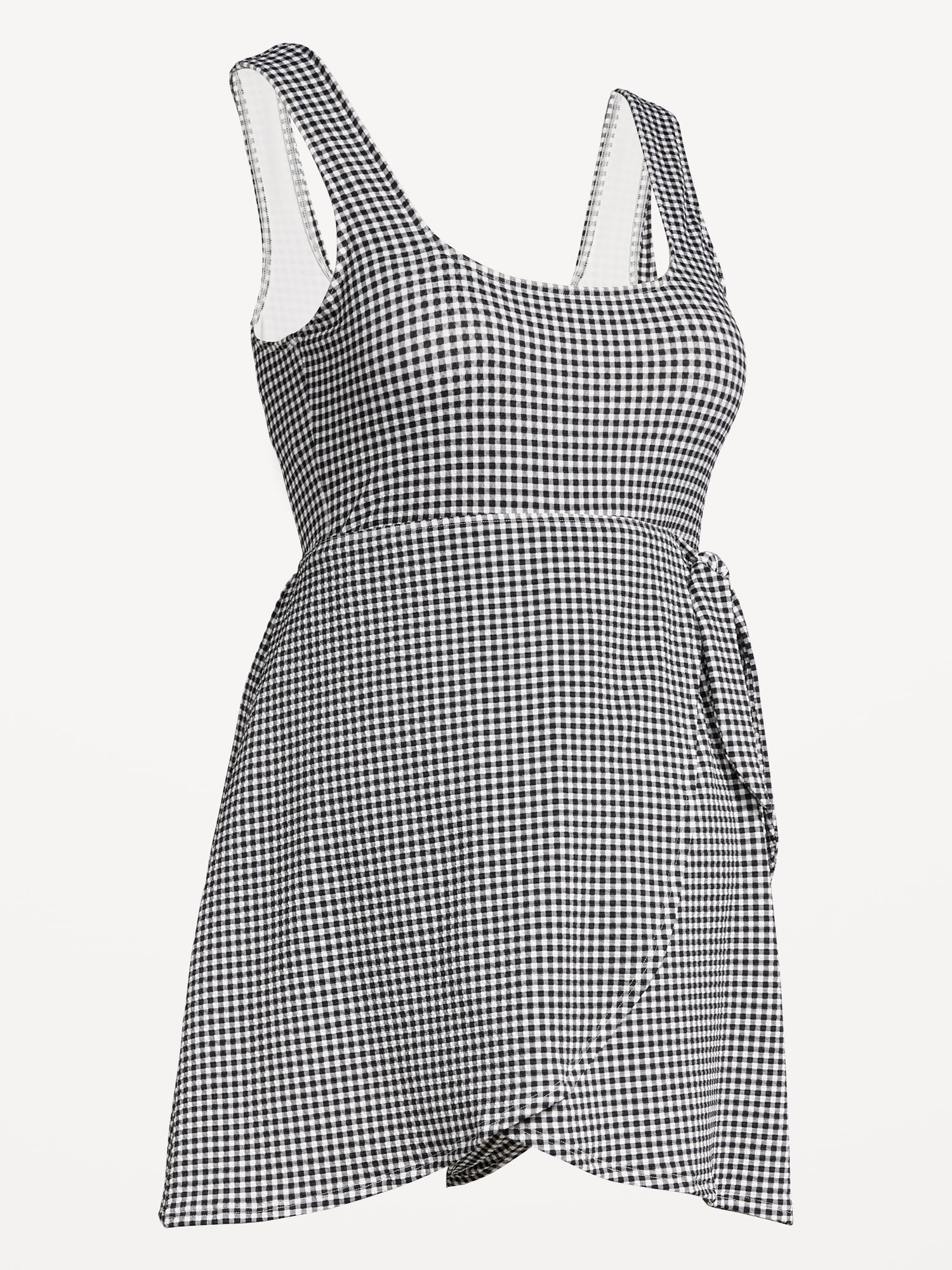Maternity Classic Wrap Swim Dress: square neck, sleeveless, removable pads, built-in briefs, side-tie, #756110