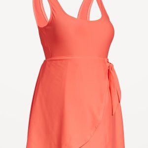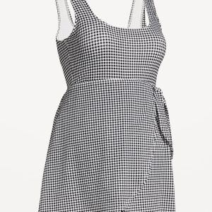 Maternity Classic Wrap Swim Dress: square neck, sleeveless, removable pads, built-in briefs, side-tie, #756110