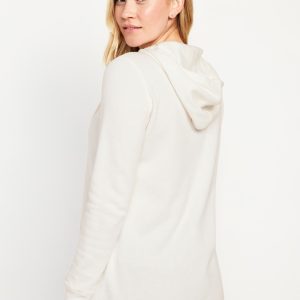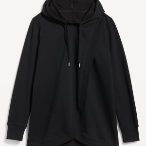 Maternity Cross-Front Nursing Pullover Hoodie: adjustable drawstring hood, long sleeves, rib-knit cuffs, cross front for convenient nursing access, rib-knit front and hem, pullover style, #578188