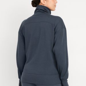 Maternity Dynamic Fleece Half Zip: Featuring Dynamic Fleece. Soft, smooth fleece plus made-to-move stretch.drawstring funnel neck, long sleeves, thumbhole cuffs, half-zip front, zip pockets, rib-knit trim, pullover style, #596853