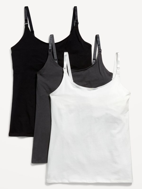 Maternity First Layer Nursing Cami Top 3-Pack: adjustable spaghetti straps, detachable clips for nursing, scoop neck, shelf-bra with elastic hem for support, #845667