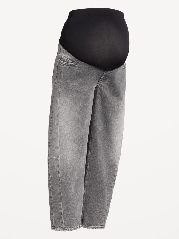 Maternity Full-Panel Baggy Barrel Jeans: The effortless curved shape that’s so hot right now.full panel waistband, faux fly, barrel leg, scoop pockets, back patch pockets, #826440