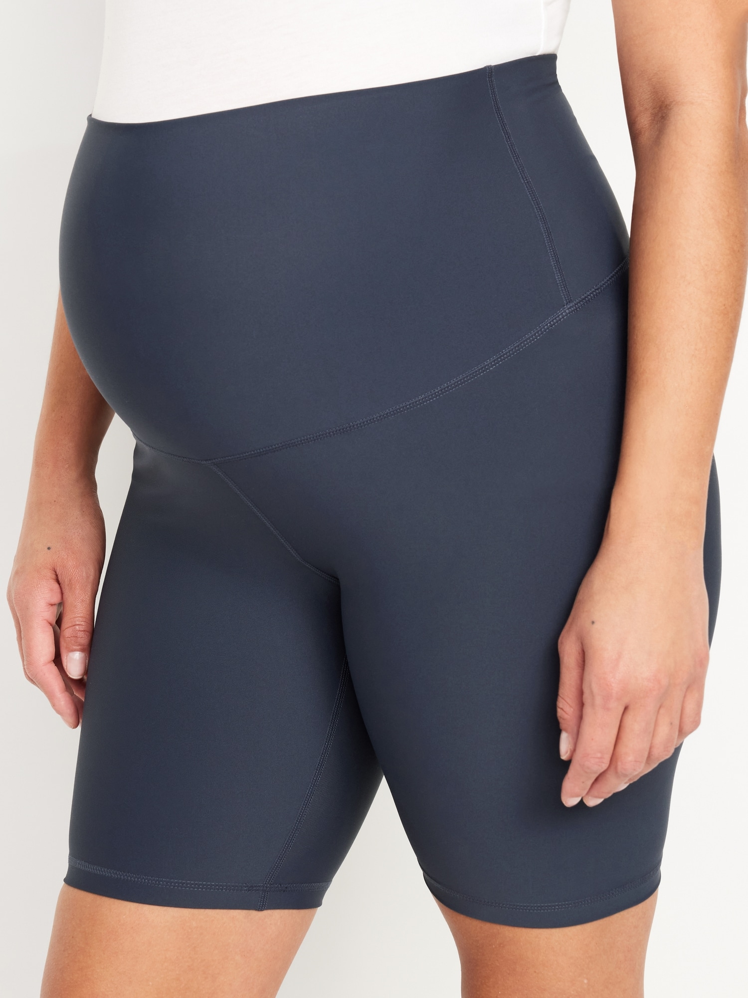 Maternity Full Panel PowerSoft Biker Shorts — 8-inch inseam: Power up your workout with our PowerSoft bike shorts. Light compression meets a ridiculously smooth, peachy-soft feel., Full panel comfort waistband, with hidden pocket that fits your phone and light-reflecting Old Navy Active logo at center back waist., Breathable, lightweight compression fabric holds you in while letting you vent., Four-way super stretch for ultimate movement., Go-Dry moisture-wicking technology keeps you dry & comfortable., Flat-lock seams prevent chafing., Gusseted for ease of movement., Tag-free label inside back waist for added comfort., #882492