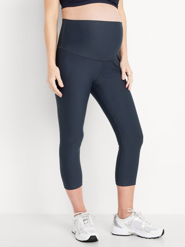 Maternity Full-Panel PowerSoft Crop Leggings: Featuring PowerSoft, light compression with a peachy-soft feel.full panel stretches over belly, side pockets, go-dry wicks moisture, #962148