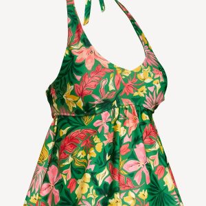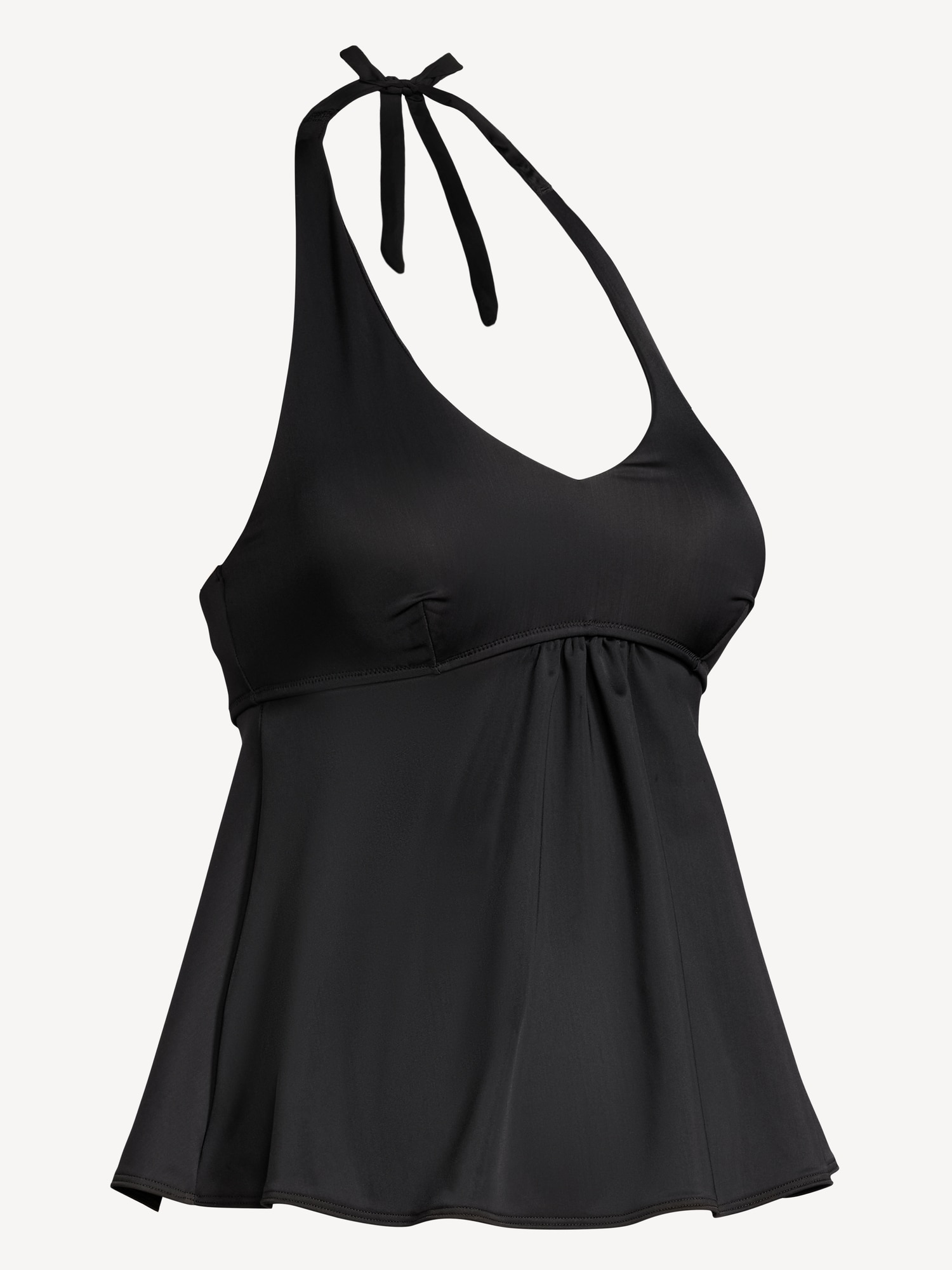 Maternity Halter Tankini Swim Top: deep v-neck, halter ties, removable molded cups, shirred detail at front, #719557