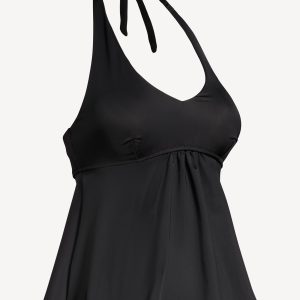 Maternity Halter Tankini Swim Top: deep v-neck, halter ties, removable molded cups, shirred detail at front, #719557