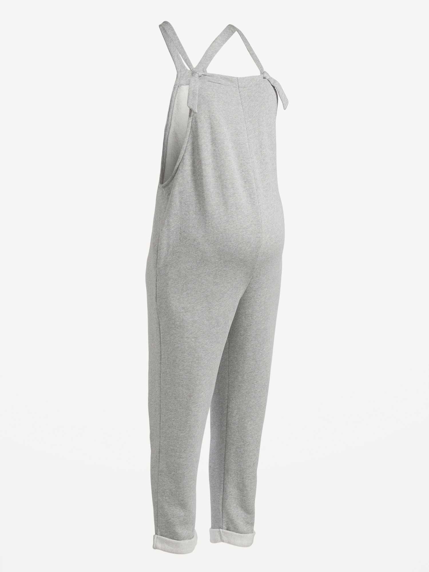 Maternity Knotted-Strap Fleece Overalls: perfect for baby shower, square neck, knotted shoulder straps, on-seam pockets, rolled cuffs, #758300