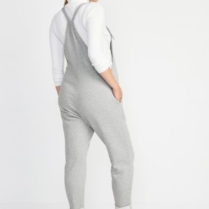 Maternity Knotted-Strap Fleece Overalls: perfect for baby shower, square neck, knotted shoulder straps, on-seam pockets, rolled cuffs, #758300