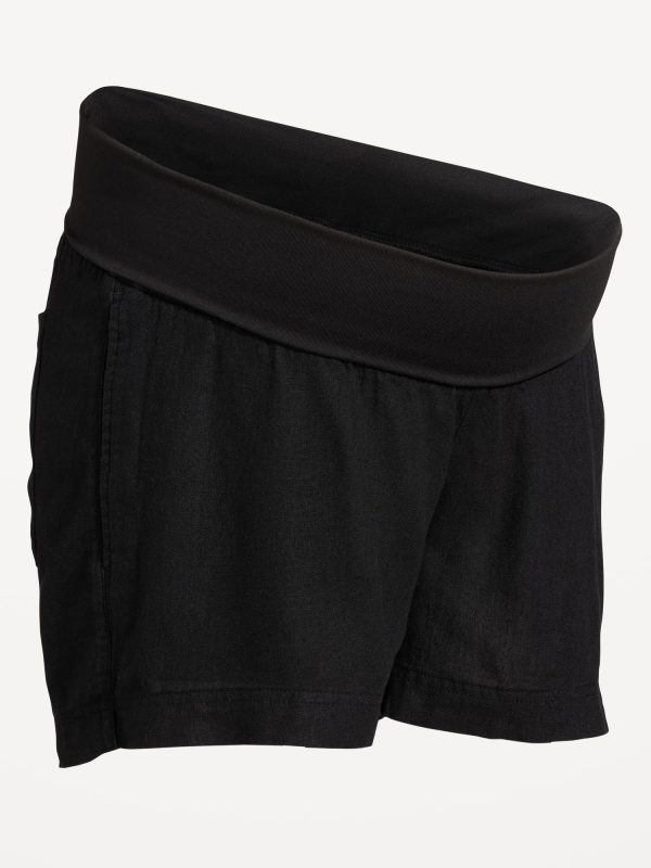 Maternity Linen-Blend Pull-On Shorts — 3.5-inch inseam: foldover jersey waistband, on-seam side pockets, back patch pockets, easy pull-on style, #746574