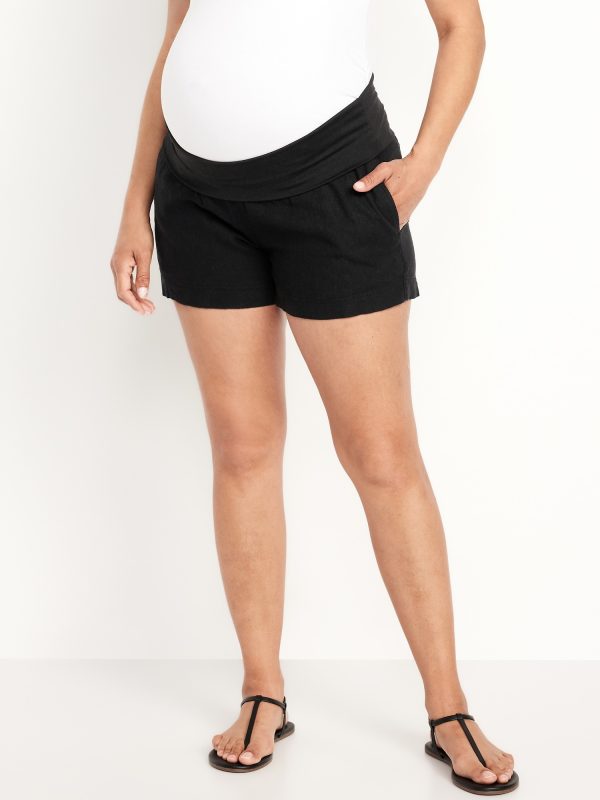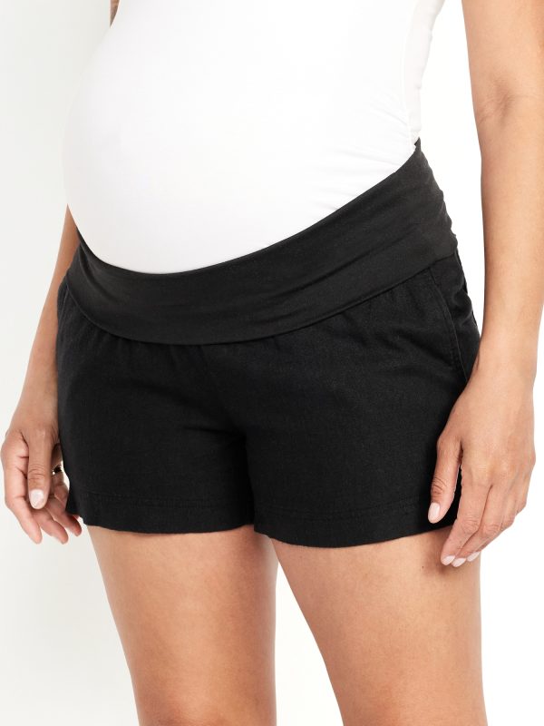 Maternity Linen-Blend Pull-On Shorts — 3.5-inch inseam