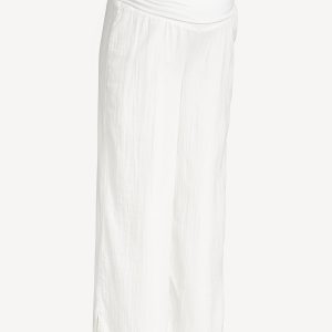Maternity Rollover Waist Crinkle Gauze Wide-Leg Pants: A light, rippled fabric that’s begging to be beachside.rollover waist, pull-on style, on-seam hip pockets, wide leg, #771711