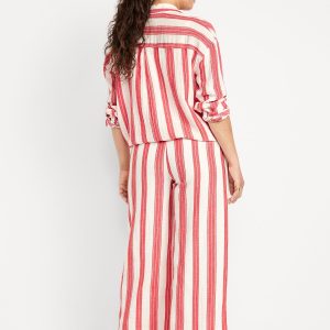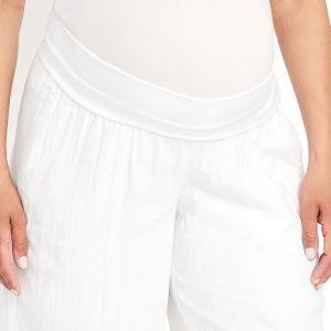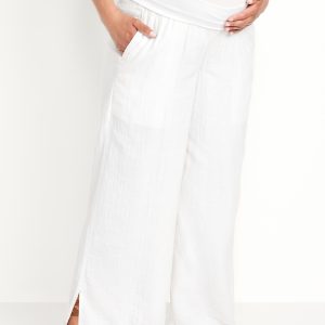 Maternity Rollover Waist Crinkle Gauze Wide-Leg Pants