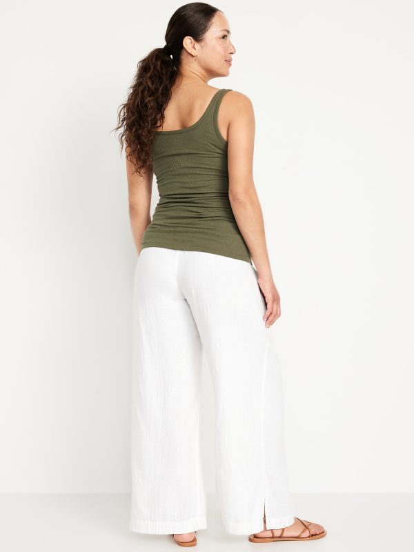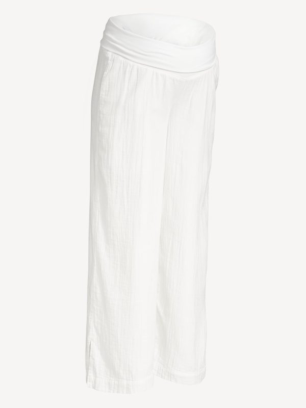 Maternity Rollover Waist Crinkle Gauze Wide-Leg Pants: A light, rippled fabric that’s begging to be beachside.rollover waist, pull-on style, on-seam hip pockets, wide leg, #771711