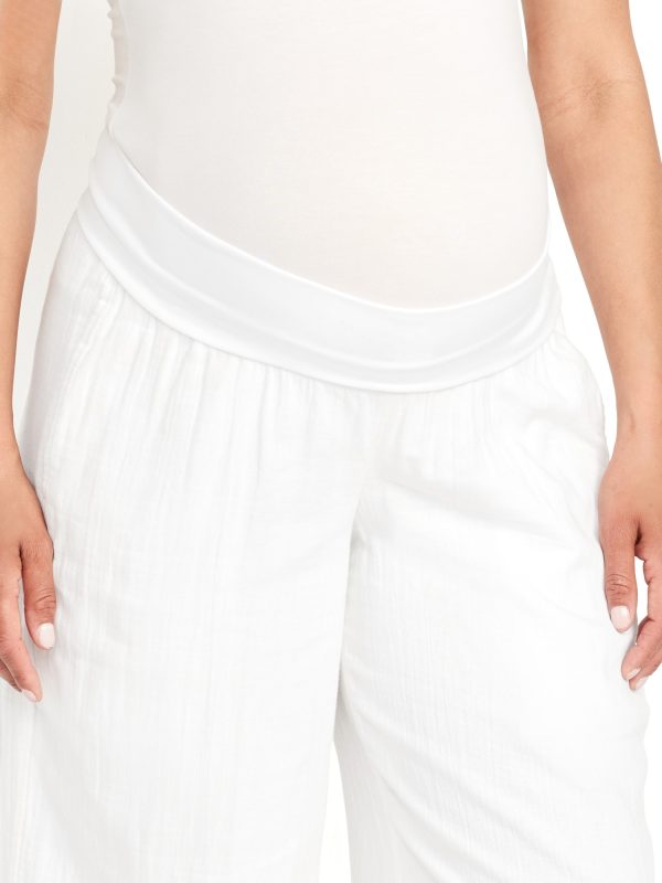 Maternity Rollover Waist Crinkle Gauze Wide-Leg Pants