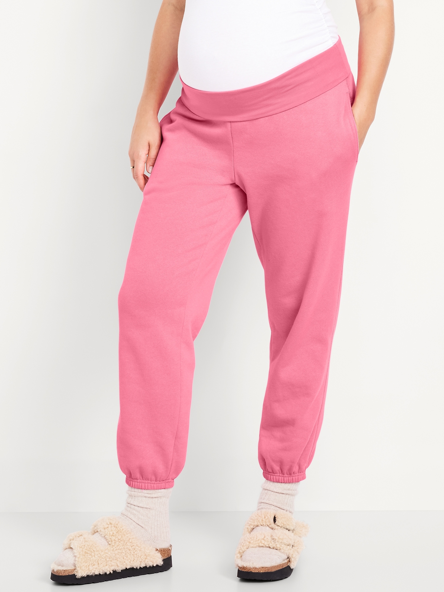 Maternity Rollover-Waist Jogger Sweatpants: rollover waistband, on-seam side pockets, a “watched all 5 seasons today” kind of pant, elasticized leg openings, pull-on style, #612127