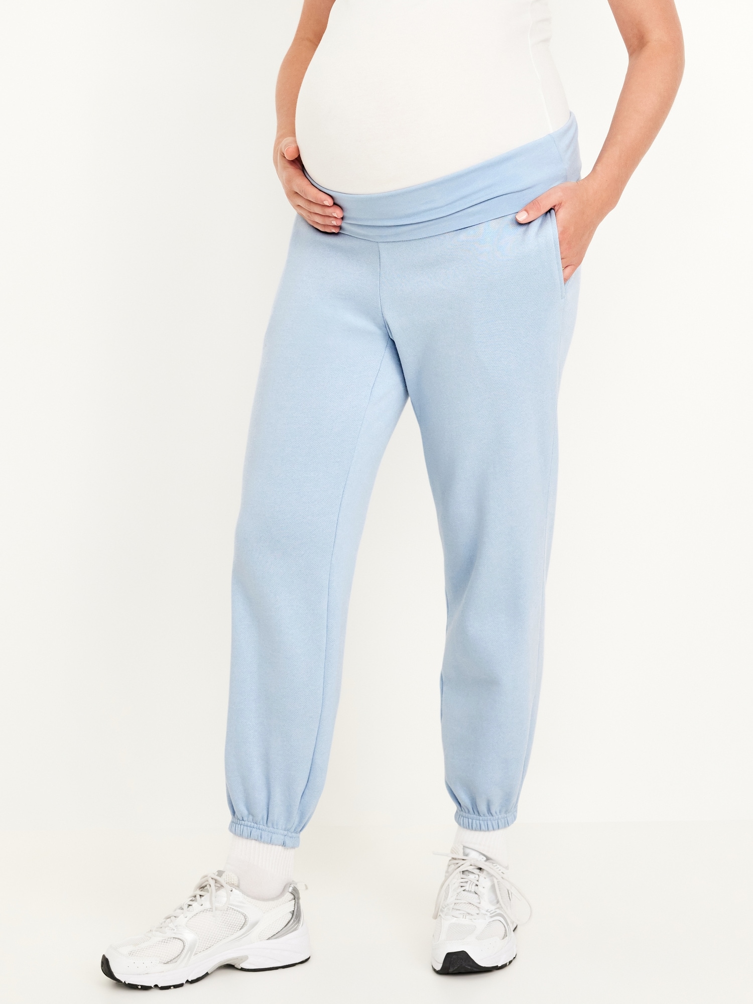 Maternity Rollover-Waist Jogger Sweatpants: rollover waistband, on-seam side pockets, a “watched all 5 seasons today” kind of pant, elasticized leg openings, pull-on style, #612127