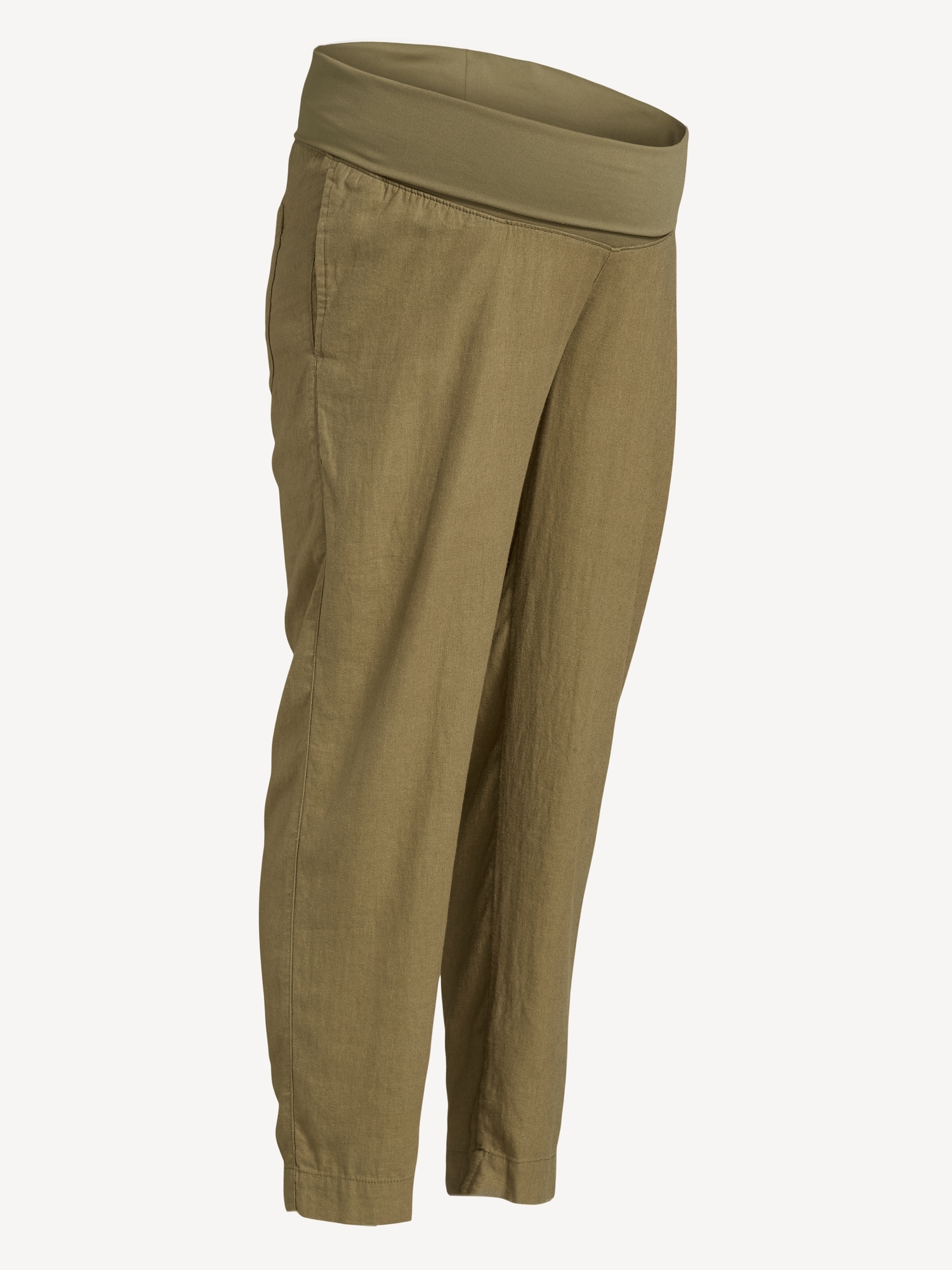 Maternity Rollover Waist Linen Pant: rollover waistband, faux fly, slit pockets at sides, patch pockets at back, #719649