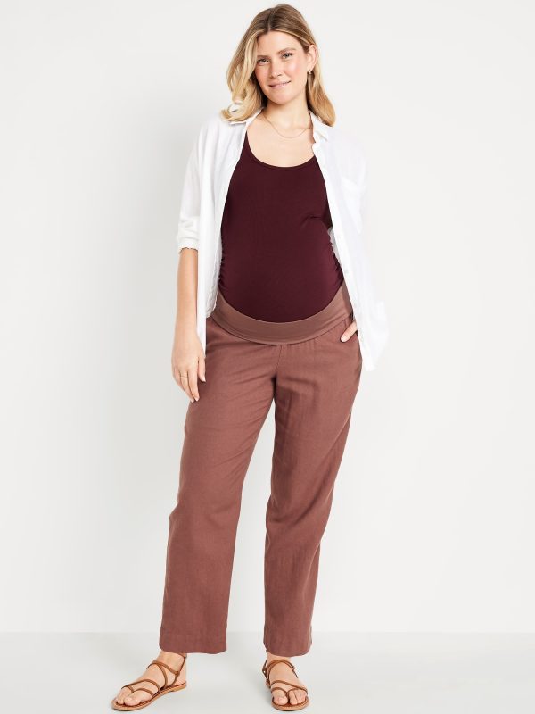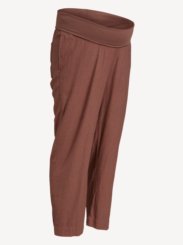 Maternity Rollover Waist Linen Pant: rollover waistband, faux fly, slit pockets at sides, patch pockets at back, #719649