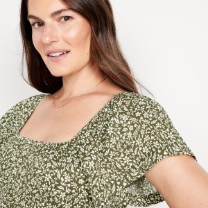 Maternity Square-Neck Crinkle Gauze Mini Dress: square neck, short flutter sleeves, tiered shirred seams, all-over floral print, #826484