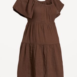 Maternity Square-Neck Crinkle Gauze Mini Dress