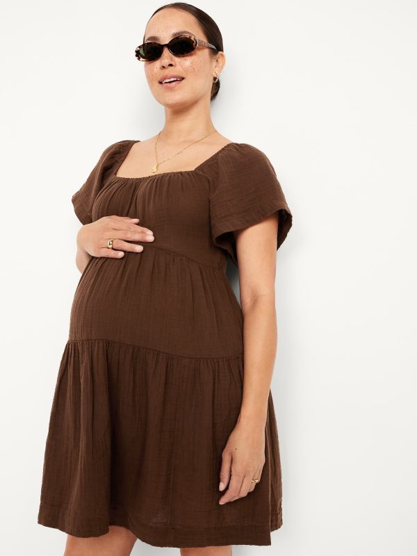 Maternity Square-Neck Crinkle Gauze Mini Dress