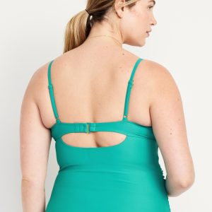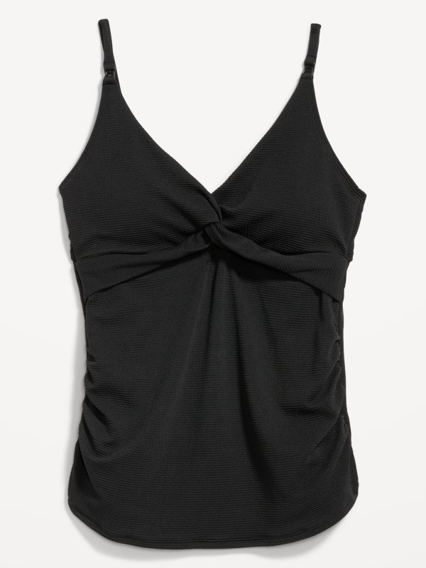 Maternity Twist-Front Cutout Nursing Tankini Swim Top