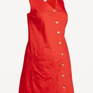 Maternity V-Neck Denim Mini Dress: V-neck, button front, patch pockets at front, #771596