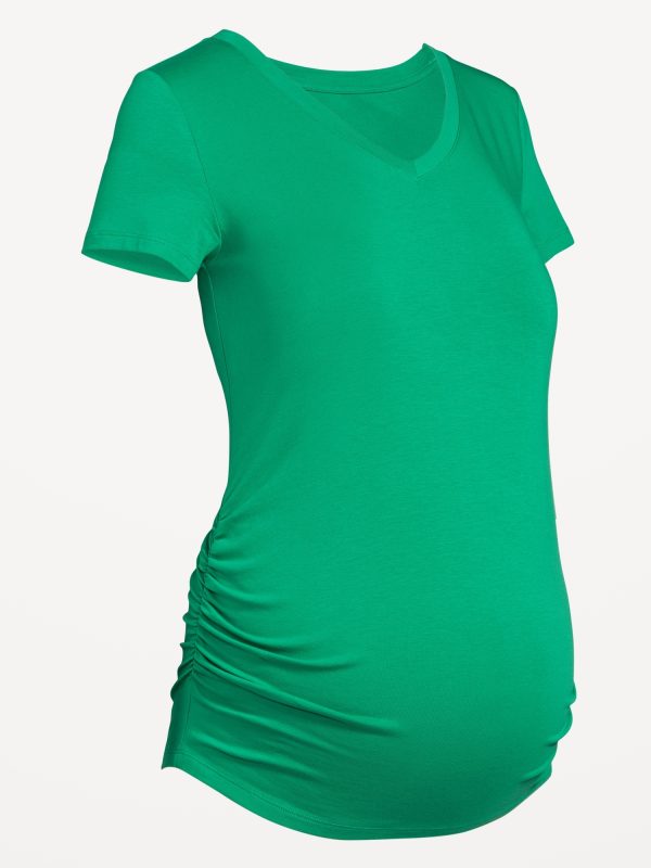 Maternity V-Neck T-Shirt: short sleeves, shirred sides for a flexible fit, #417926