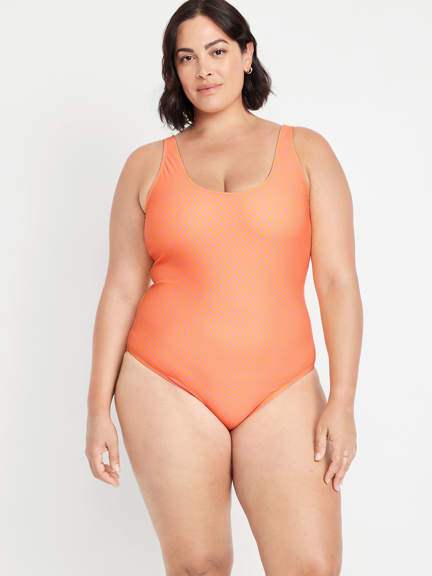 Matte One-Piece Swimsuit: scoop neck, wide straps, low scoop back, removable pads, elastic leg openings, #604387