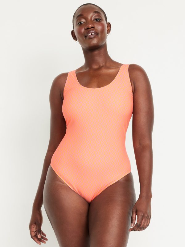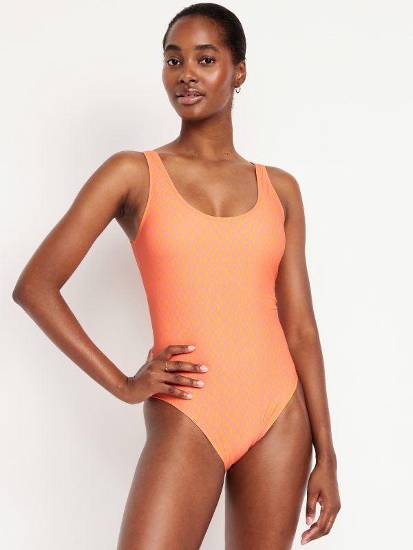 Matte One-Piece Swimsuit: scoop neck, wide straps, low scoop back, removable pads, elastic leg openings, #604387