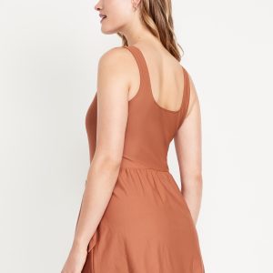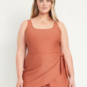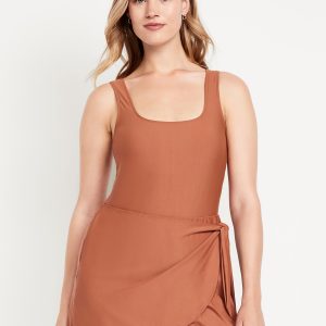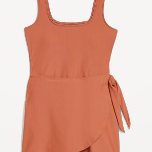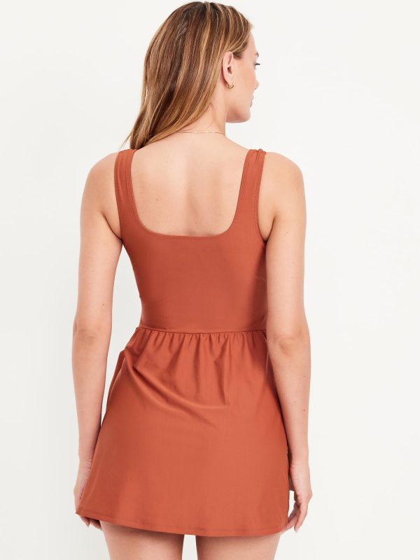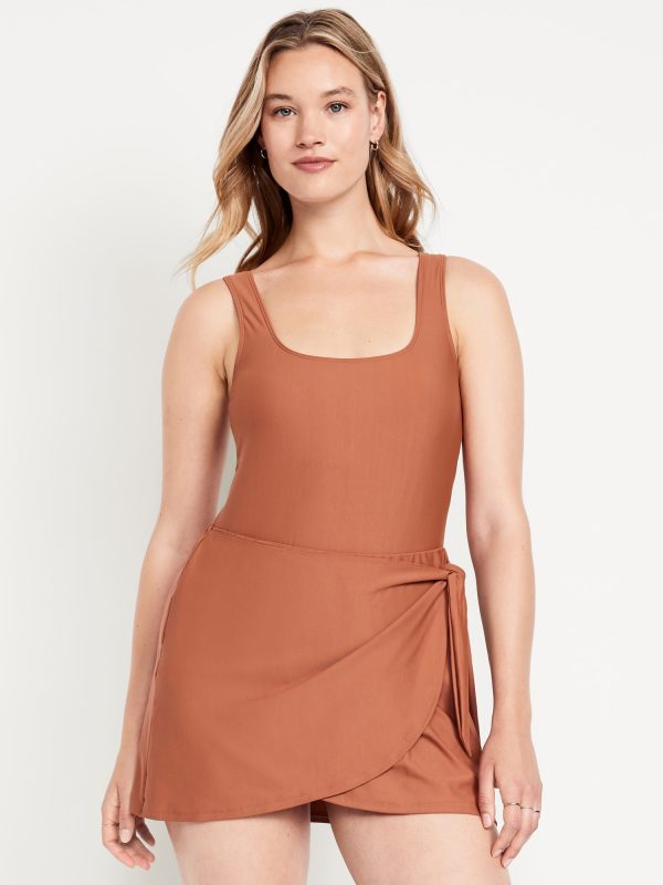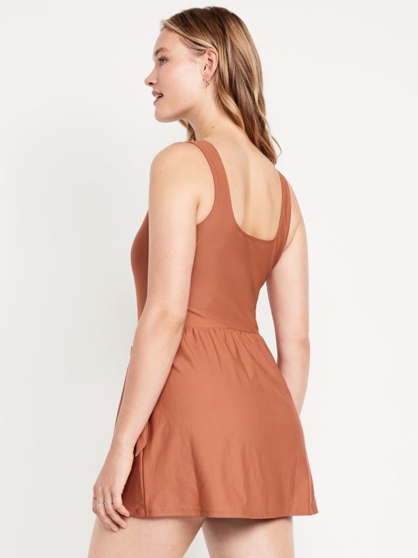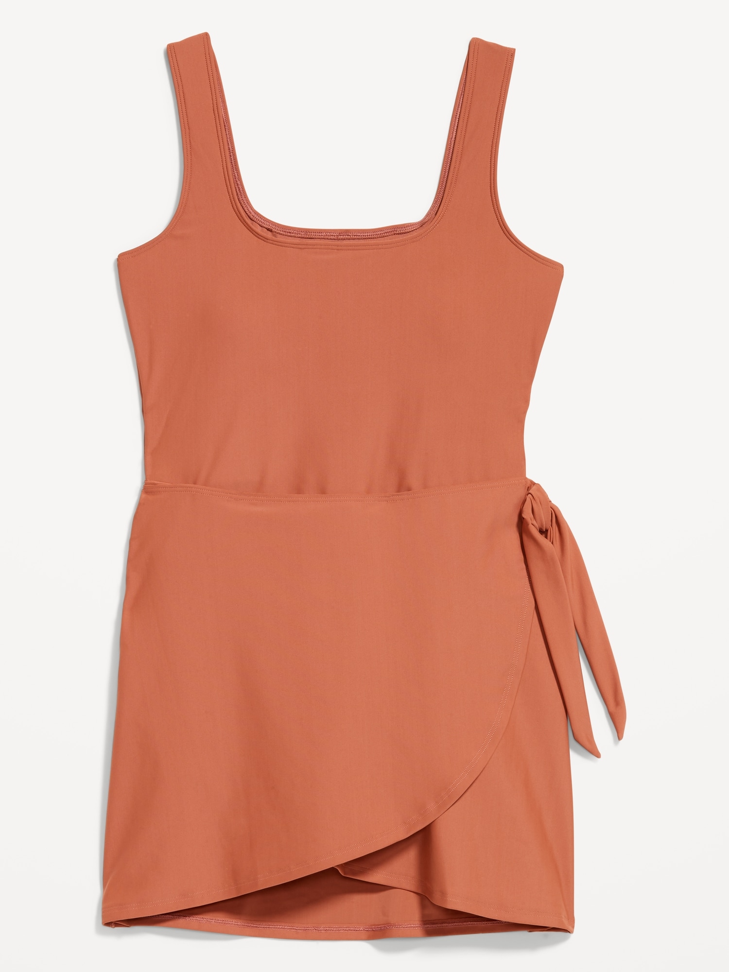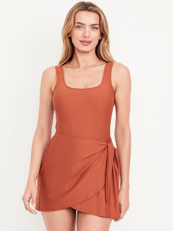 Matte Side-Tie Swim Dress: square neck, wide shoulder straps, removable pads, built-in briefs, #854710