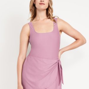 Matte Side-Tie Swim Dress