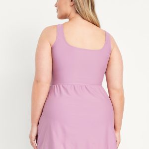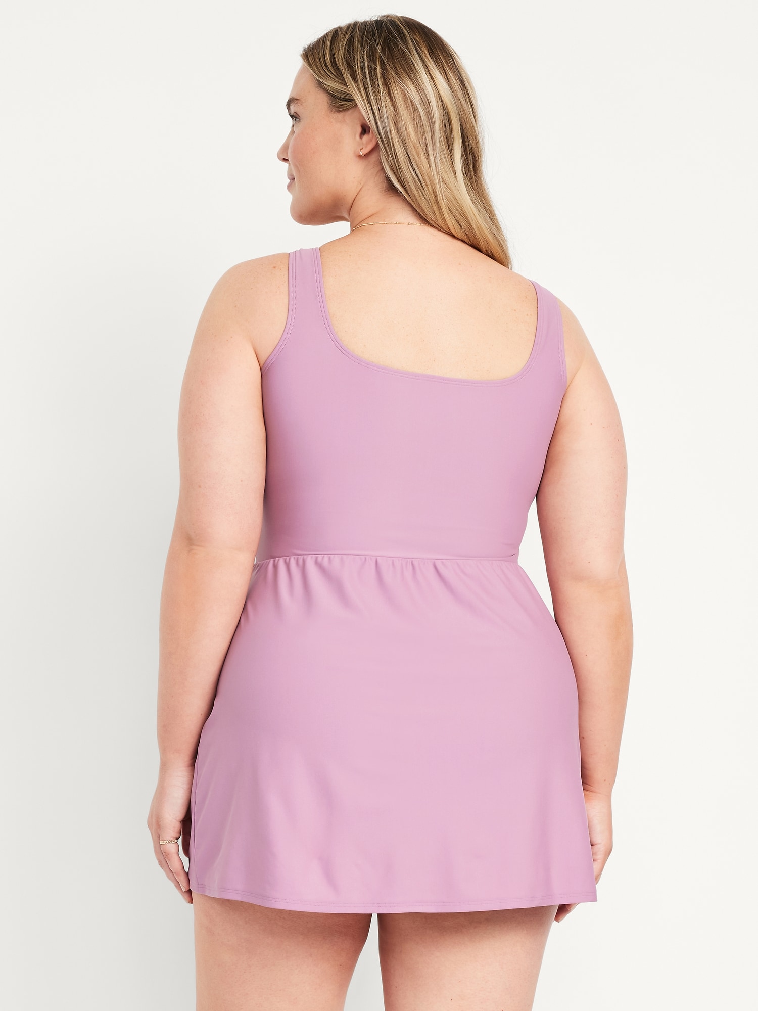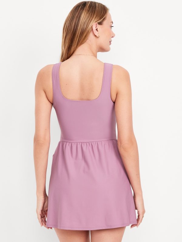 Matte Side-Tie Swim Dress: square neck, wide shoulder straps, removable pads, built-in briefs, #854710