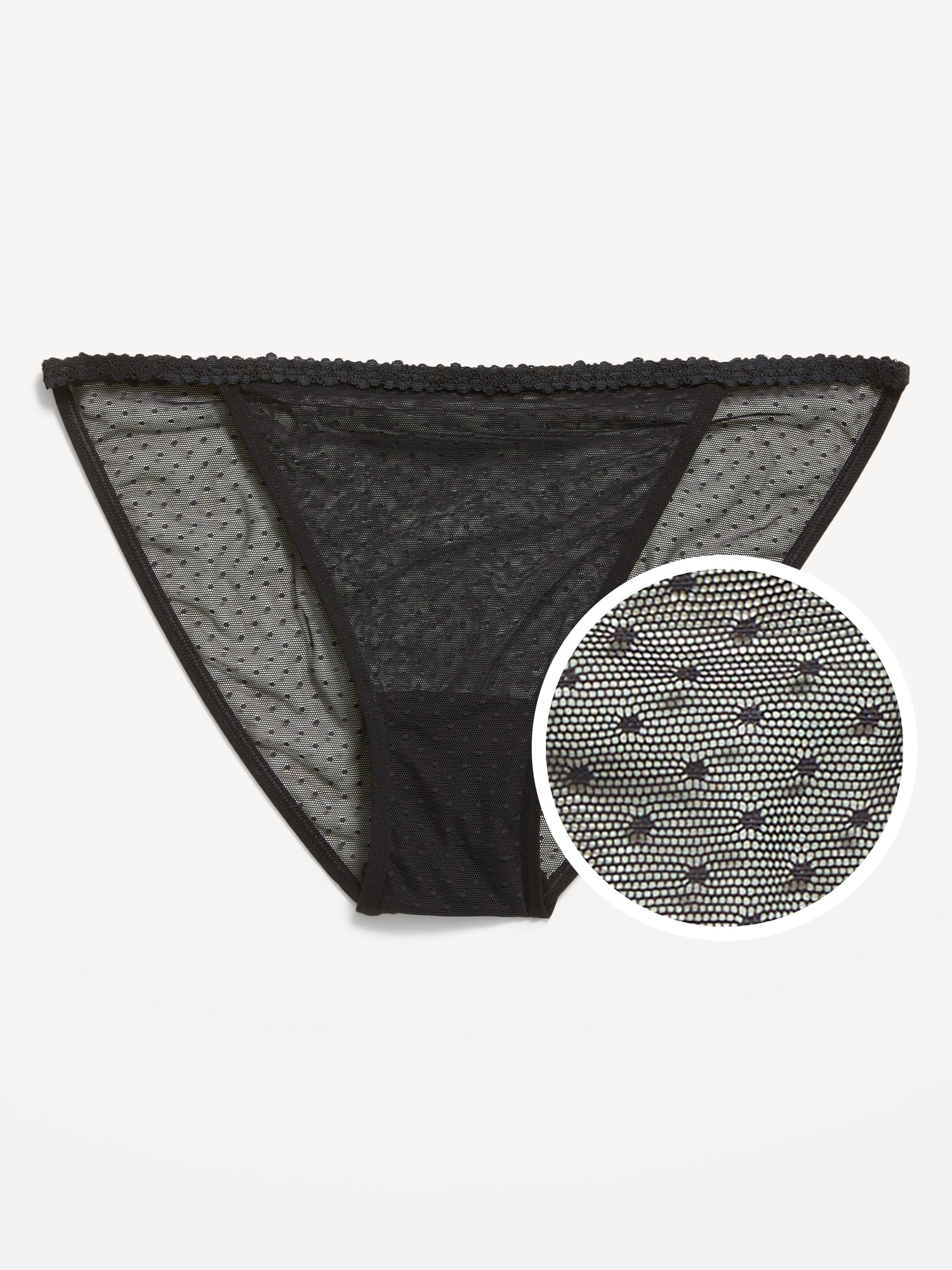 Mesh String Bikini Underwear: lace-trim waistband, elasticized waist, elasticized leg openings, #800576