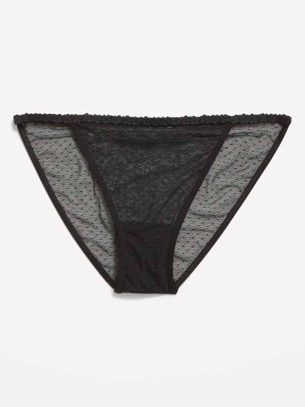 Mesh String Bikini Underwear: lace-trim waistband, elasticized waist, elasticized leg openings, #800576