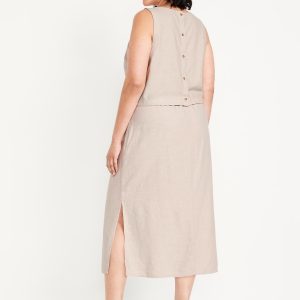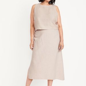 Mid-Rise Linen-Blend Midi Skirt