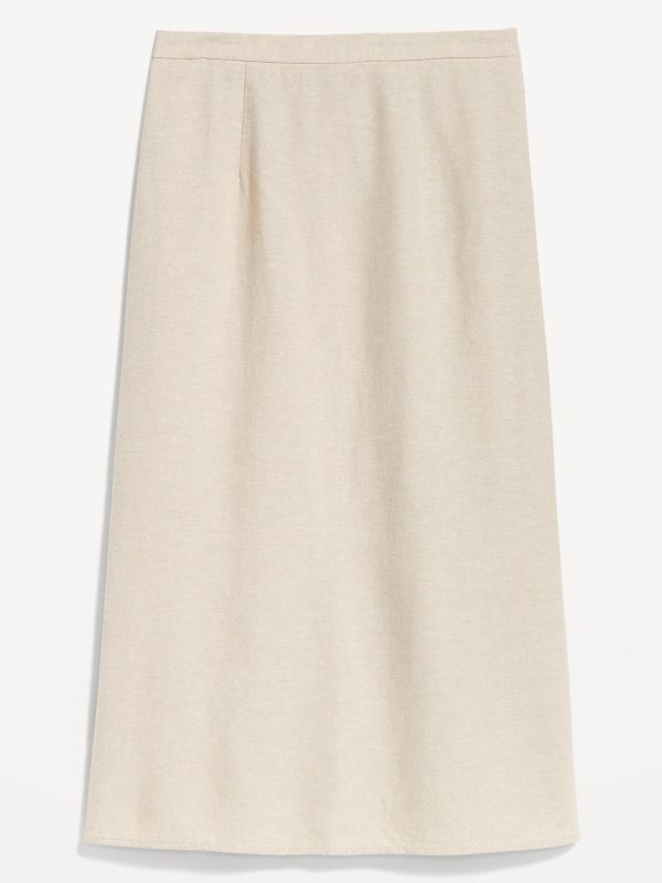 Mid-Rise Linen-Blend Midi Skirt