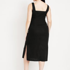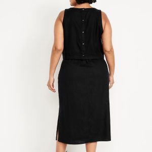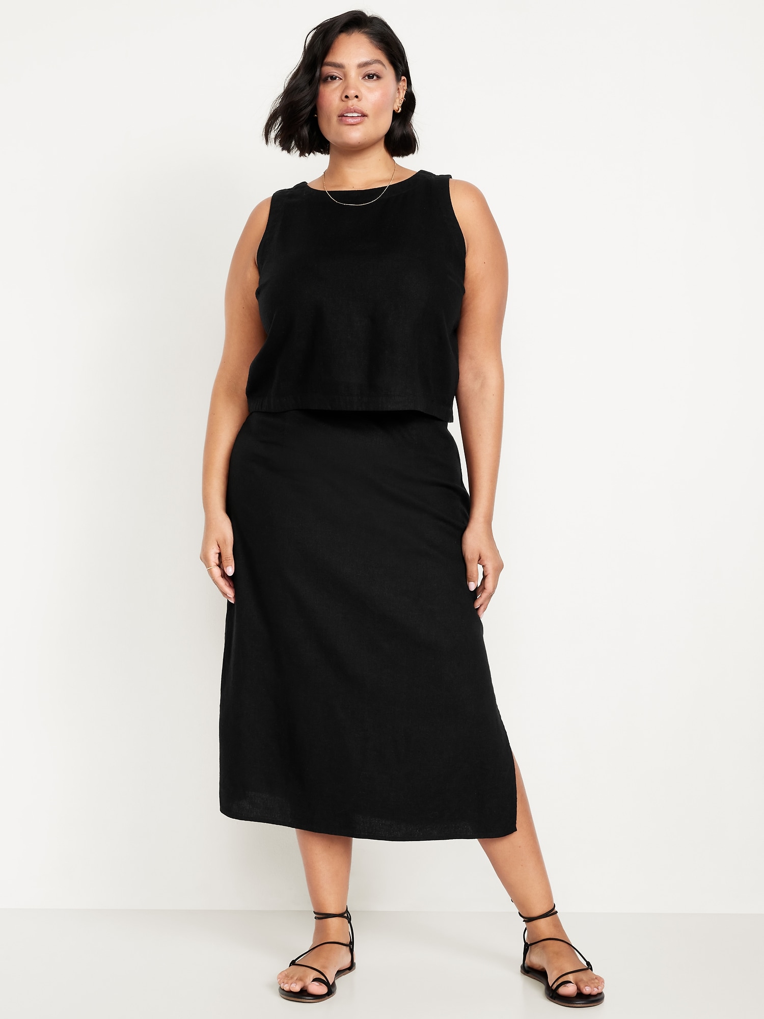 Mid-Rise Linen-Blend Midi Skirt: elasticized back waist, hidden left side zipper, side slits, easy pull-on style, #705483