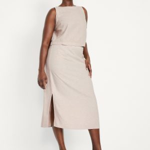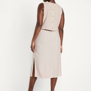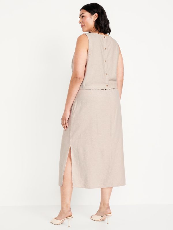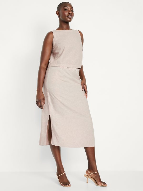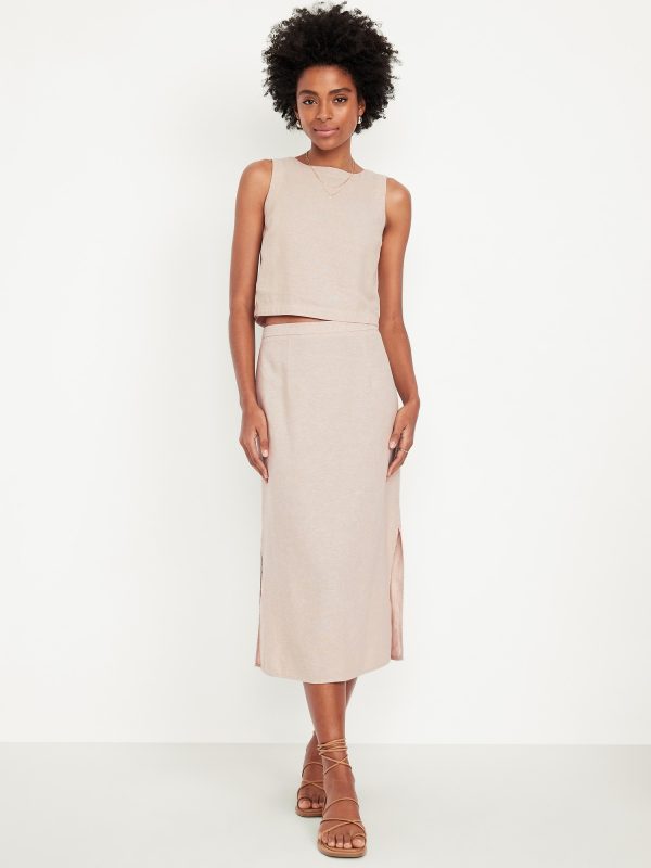 Mid-Rise Linen-Blend Midi Skirt