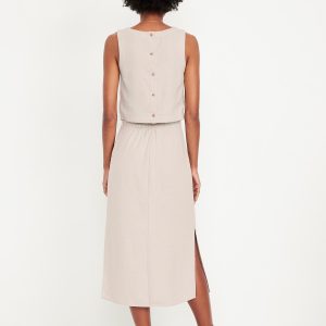 Mid-Rise Linen-Blend Midi Skirt: elasticized back waist, hidden left side zipper, side slits, easy pull-on style, #705483