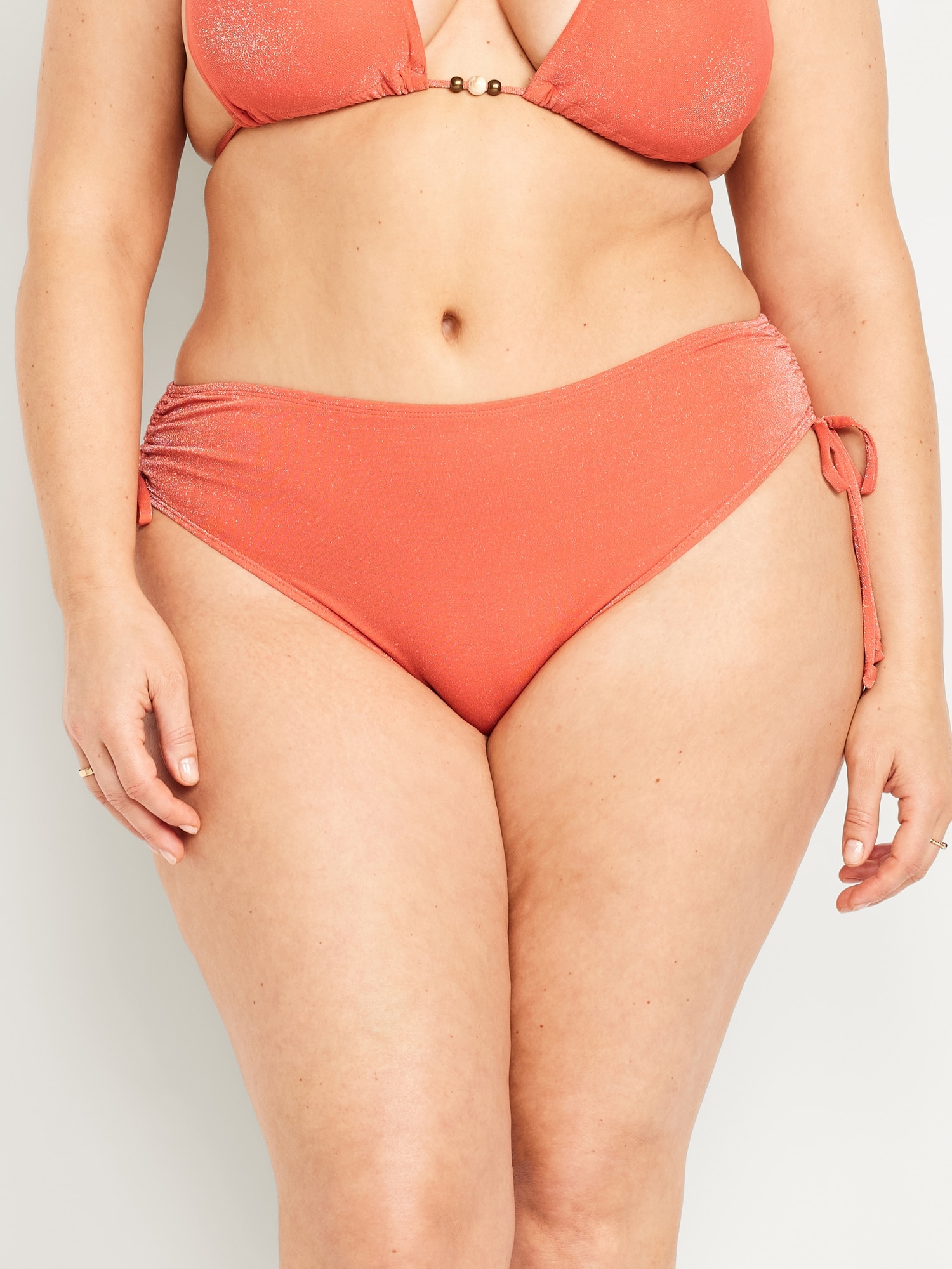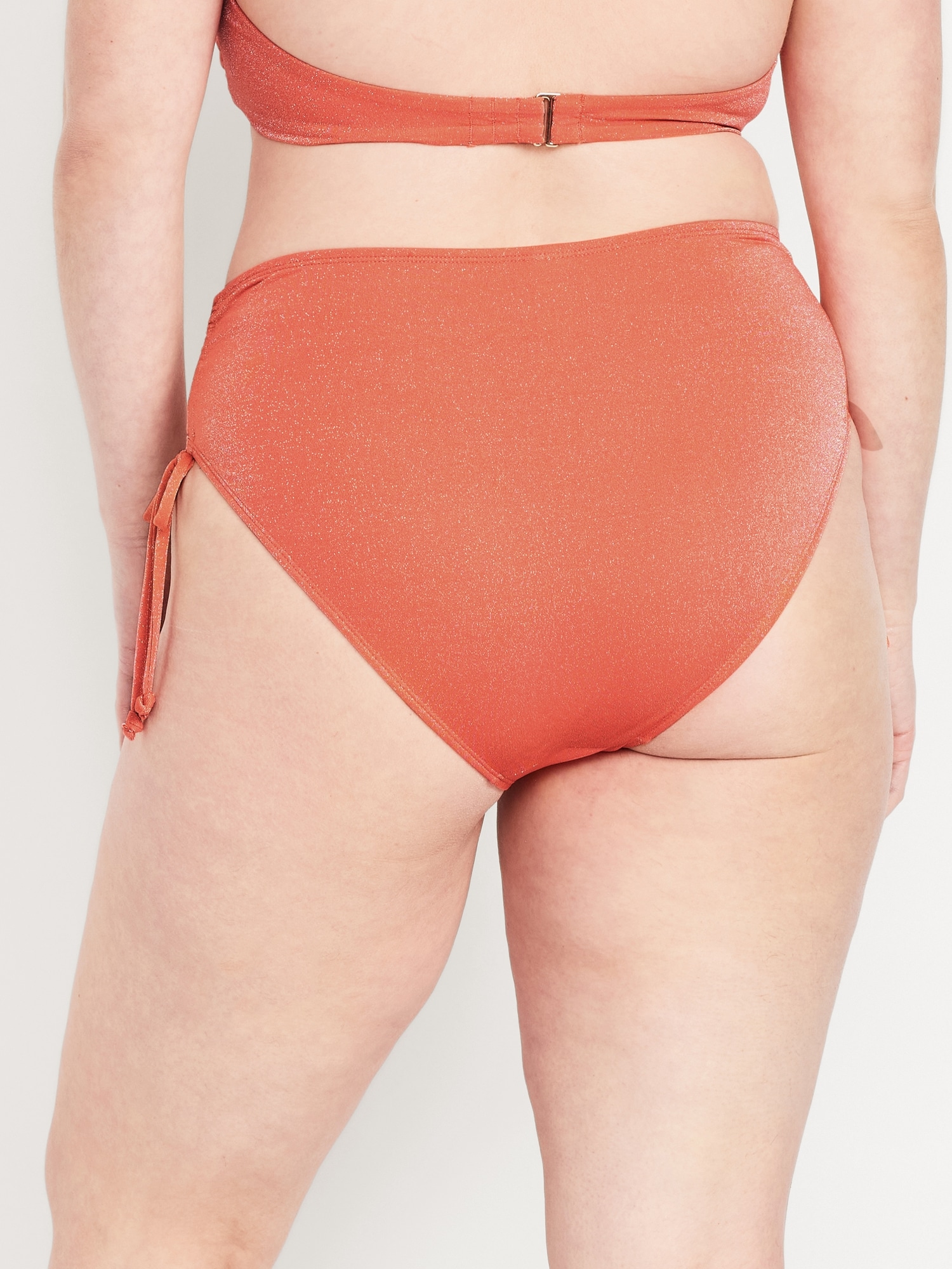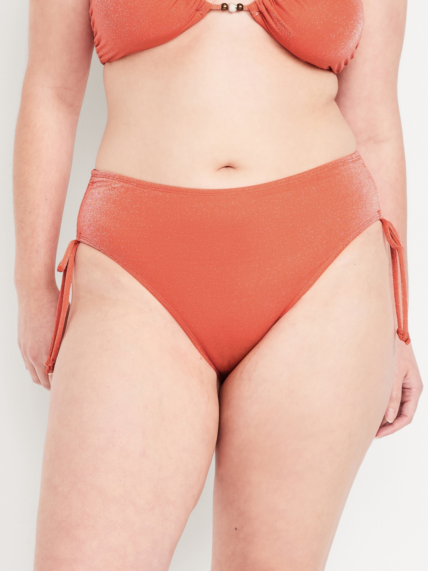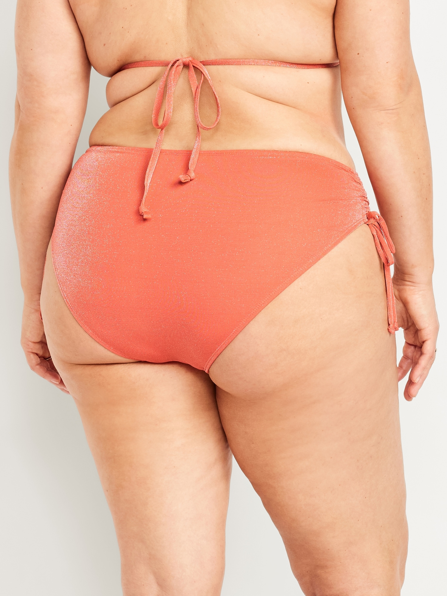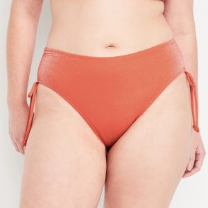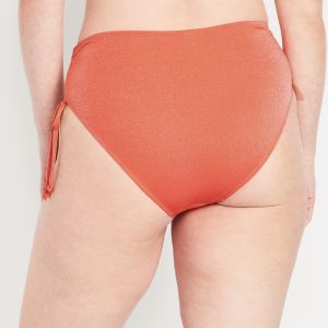 Mid-Rise Side-Tie Shine Bikini Swim Bottoms