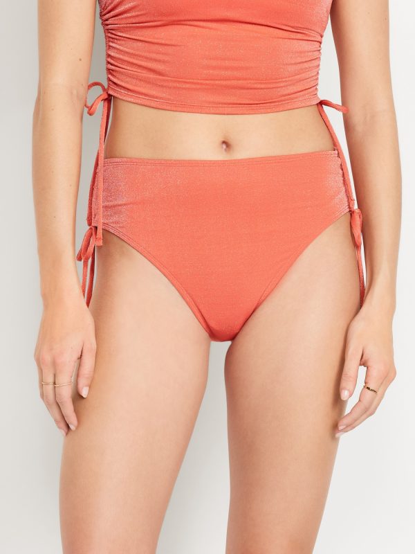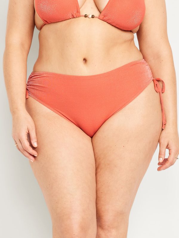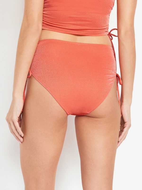Mid-Rise Side-Tie Shine Bikini Swim Bottoms
