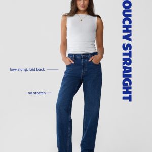 Mid-Rise Slouchy Straight Jeans: Low-slung and laid back, with puddling at the hem.mid-rise waist that’s low slung on the hips, hidden button fly, straight leg, #805756