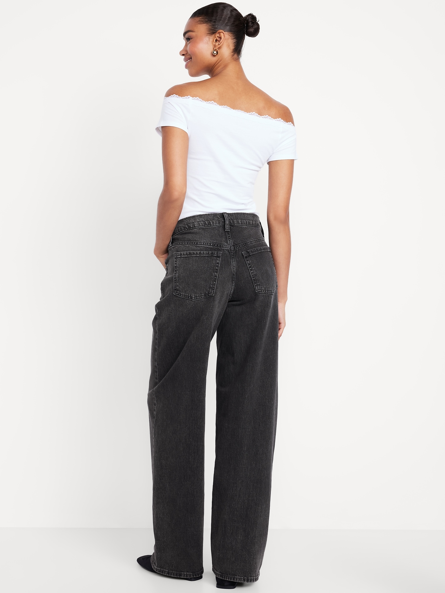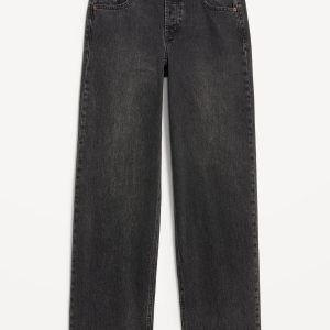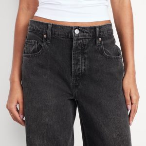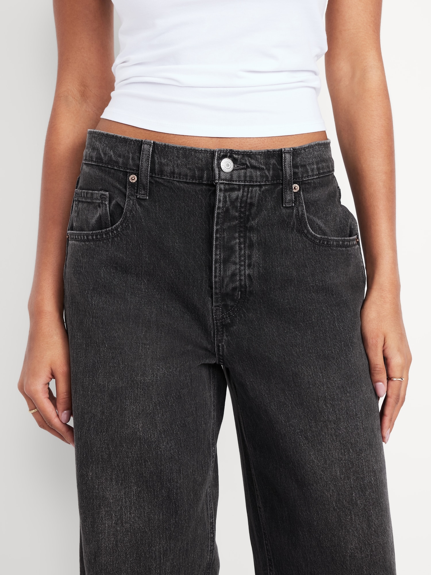 Mid-Rise Slouchy Wide-Leg Jeans: Low-slung and laid back with a long silhouette.mid-rise waist that’s low slung on the hips, hidden button fly, wide leg puddles at hem, #805772
