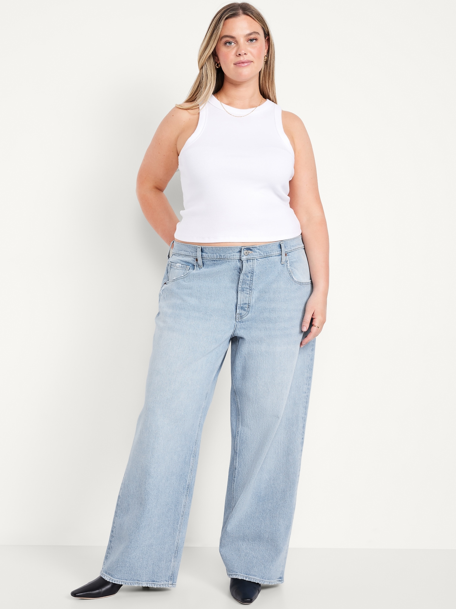 Mid-Rise Slouchy Wide-Leg Jeans: Low-slung and laid back with a long silhouette.mid-rise waist that’s low slung on the hips, hidden button fly, wide leg puddles at hem, #805772