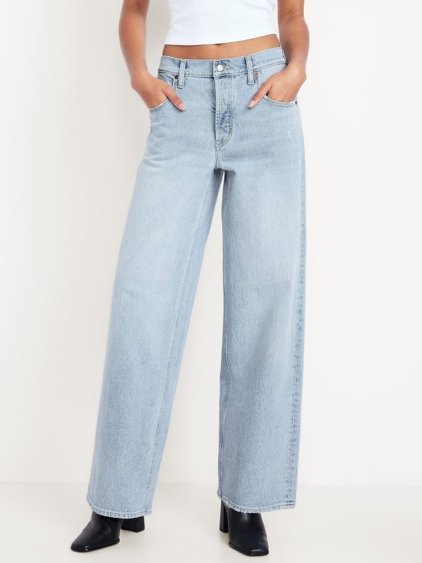 Mid-Rise Slouchy Wide-Leg Jeans: Low-slung and laid back with a long silhouette.mid-rise waist that’s low slung on the hips, hidden button fly, wide leg puddles at hem, #805772